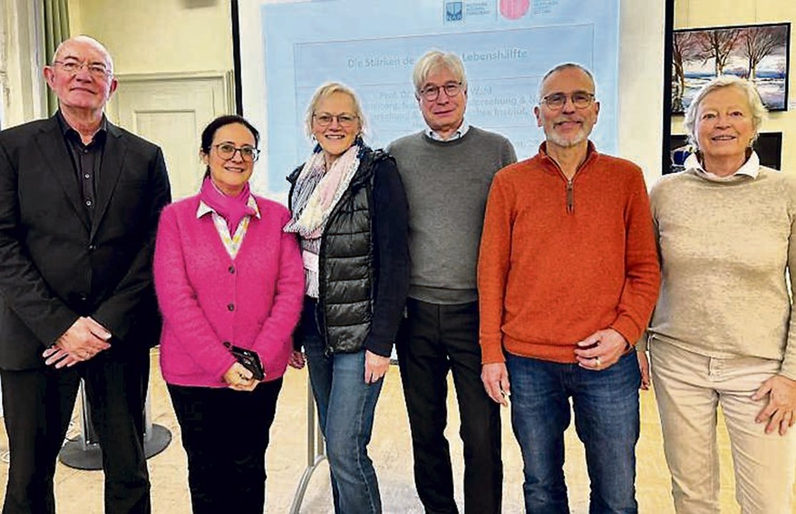 Der Vortrag mit dem Titel „Die Stärken der zweiten Lebenshälfte“ stieß auf großes Interesse. Unser Bild zeigt (von links) Prof. Dr. Hans-Werner Wahl, Dr. Cristina Ricca, Sonja Kühn und Jürgen Weiss (Stadtseniorenrat), Dr. Andreas Marg (Leben mit Demenz) und Dr. Traute Schneider vom Stiftungsrat der Bürgerstiftung. Bild: VHS